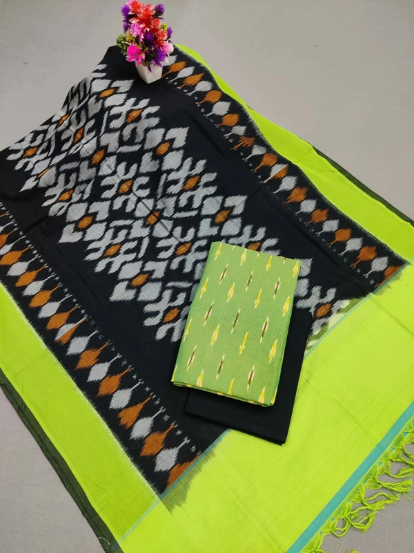 - This Beautifully Weaved Ikkat Print on Cotton Fabrics looks elegant and may be used as Gifts to your Sister, Mother, Wife, Colleagues, and Friends and may easily become the best gifting option for your loved ones.