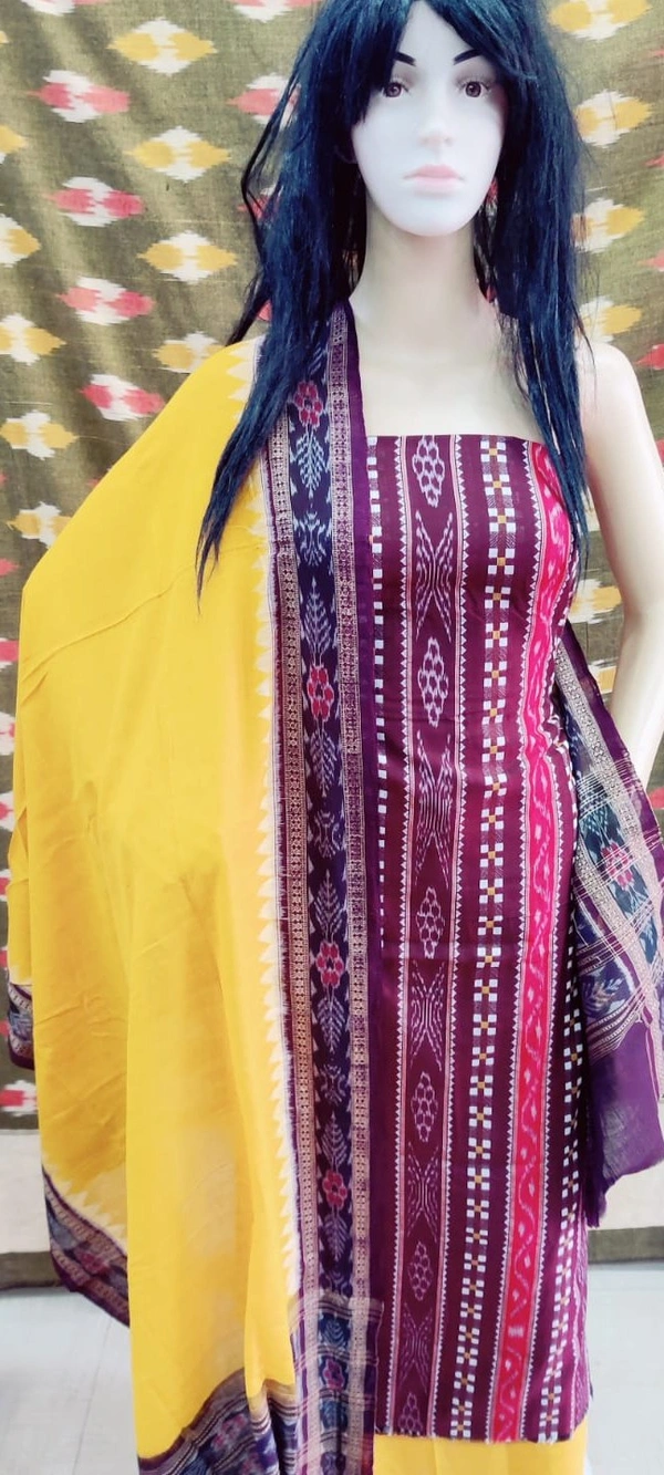 100665 Sambalpuri Handloom Cotton Dress Materials With Dupatta Set