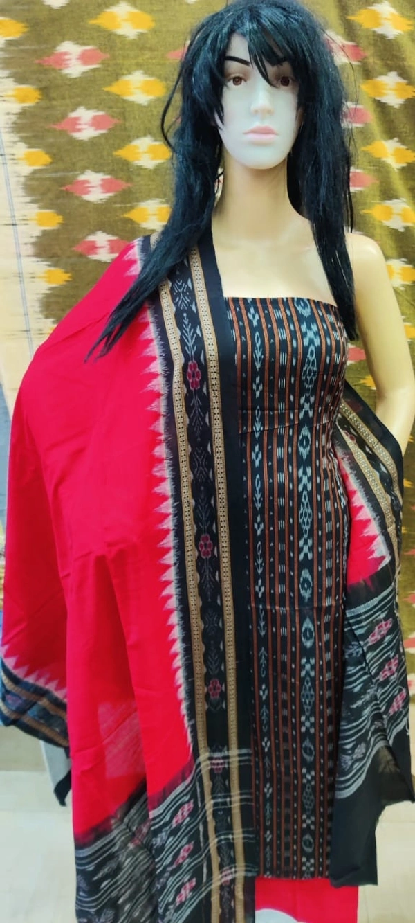100711 Sambalpuri Handloom Cotton Dress Materials With Dupatta Set