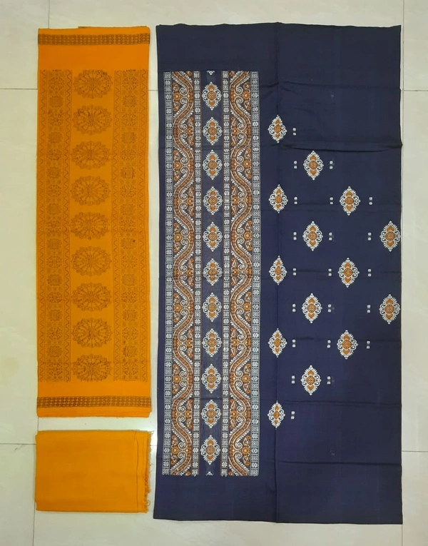 Fabric - Suit ( Top ) - Cotton, Salwar ( Bottom ) - Cotton, Dupatta - Cotton. This sambalpuri Handloom Salwar Suit Dress Material is made up of Breathable Cotton Ikat to give you immense comfort throughout the day.