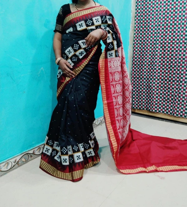 Silk pata with Sambalpuri patchwork saree with Blause ..