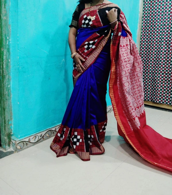 Silk pata with Sambalpuri patchwork saree with Blause ..