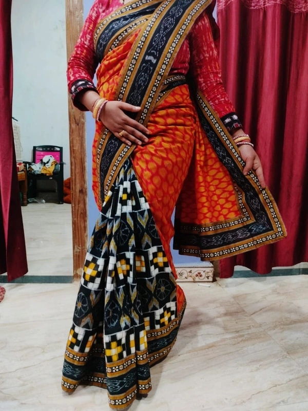 Sambalpuri patchwork saree is a weaving style that employs resist dyeing technique to impart colors to the yarns before their interlacement. The fabric woven in this technique shows a feathered and hazy pattern which is a wonderful classic in its own way.