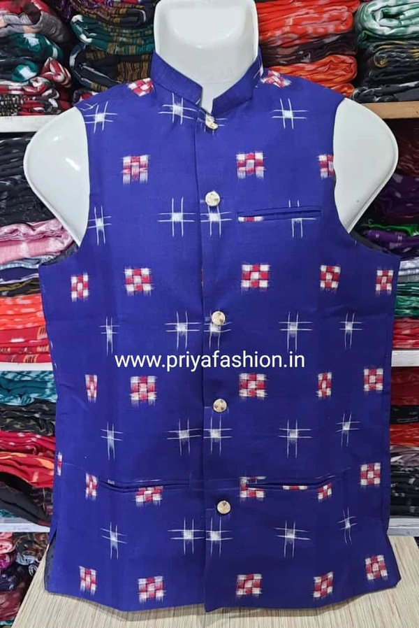 Priya Tailor Is A Modern Fashion tailor Brand Known For Exceptional Craftsmanship And Contemporary Tailoring. Sambalpuri Nehru Jacket Also Known As Jawahar Cut For Mens Gives The Perfect Look For Formal To Casual Occasions With The High Quality Blended Fabric Combined With Perfectly Crafted Stitching. These Nehru Jackets Have 3 Pockets And Have A Regular Fit.These Jackets Will Enhance Your Elegance And Is Sure To Make Heads Turn. So, Go Ahead And Add These To Your Collection And Make Every Occasion A Memorable One.Pair It With Shirt Or Kurta For A Chic Evening Party.
