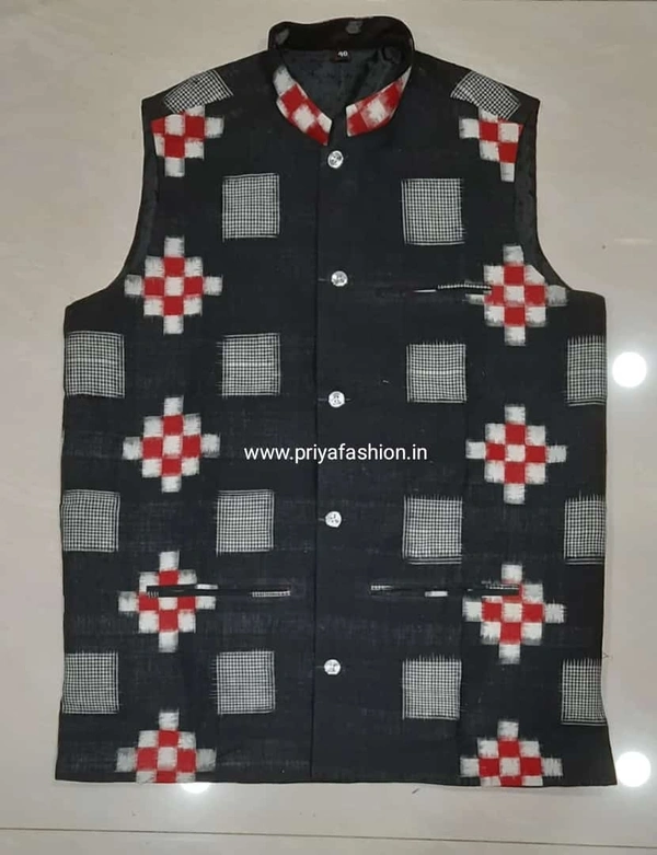 Priya Tailor Is A Modern Fashion tailor Brand Known For Exceptional Craftsmanship And Contemporary Tailoring. Sambalpuri Nehru Jacket Also Known As Jawahar Cut For Mens Gives The Perfect Look For Formal To Casual Occasions With The High Quality Blended Fabric Combined With Perfectly Crafted Stitching. These Nehru Jackets Have 3 Pockets And Have A Regular Fit.These Jackets Will Enhance Your Elegance And Is Sure To Make Heads Turn. So, Go Ahead And Add These To Your Collection And Make Every Occasion A Memorable One.Pair It With Shirt Or Kurta For A Chic Evening Party.