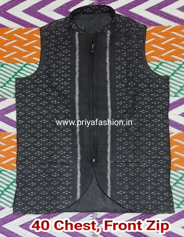 Priya Tailor Is A Modern Fashion tailor Brand Known For Exceptional Craftsmanship And Contemporary Tailoring. Sambalpuri Nehru Jacket Also Known As Jawahar Cut For Mens Gives The Perfect Look For Formal To Casual Occasions With The High Quality Blended Fabric Combined With Perfectly Crafted Stitching. These Nehru Jackets Have 3 Pockets And Have A Regular Fit.These Jackets Will Enhance Your Elegance And Is Sure To Make Heads Turn. So, Go Ahead And Add These To Your Collection And Make Every Occasion A Memorable One.Pair It With Shirt Or Kurta For A Chic Evening Party.