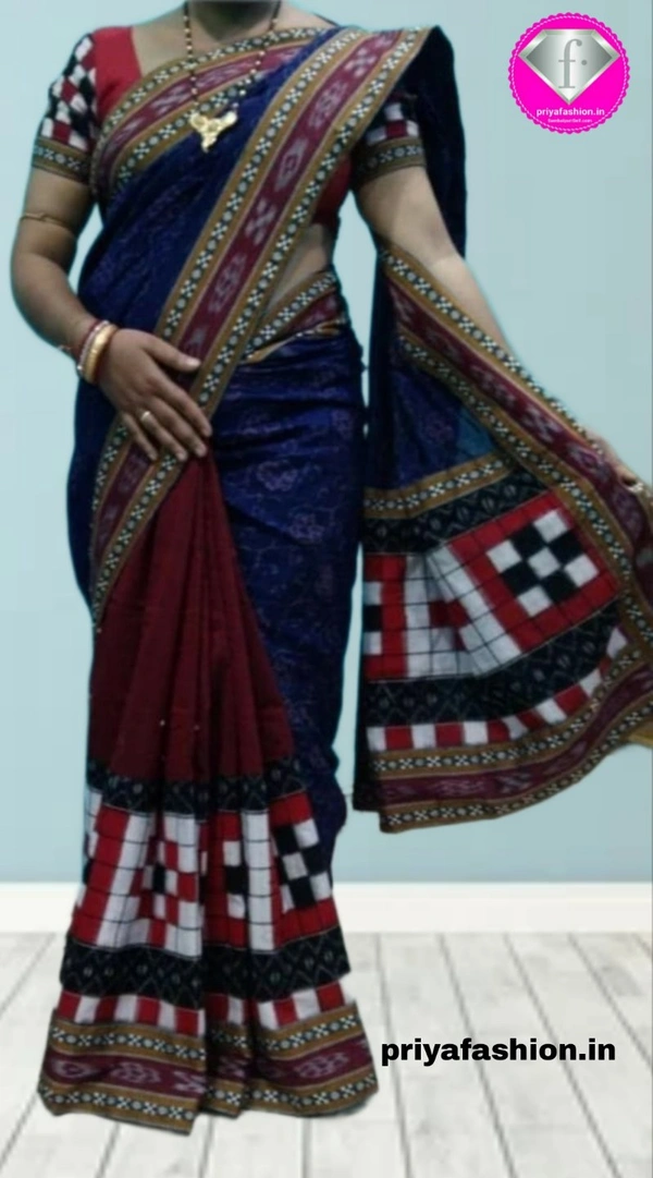 Sambalpuri patchwork saree is a weaving style that employs resist dyeing technique to impart colors to the yarns before their interlacement. The fabric woven in this technique shows a feathered and hazy pattern which is a wonderful classic in its own way.