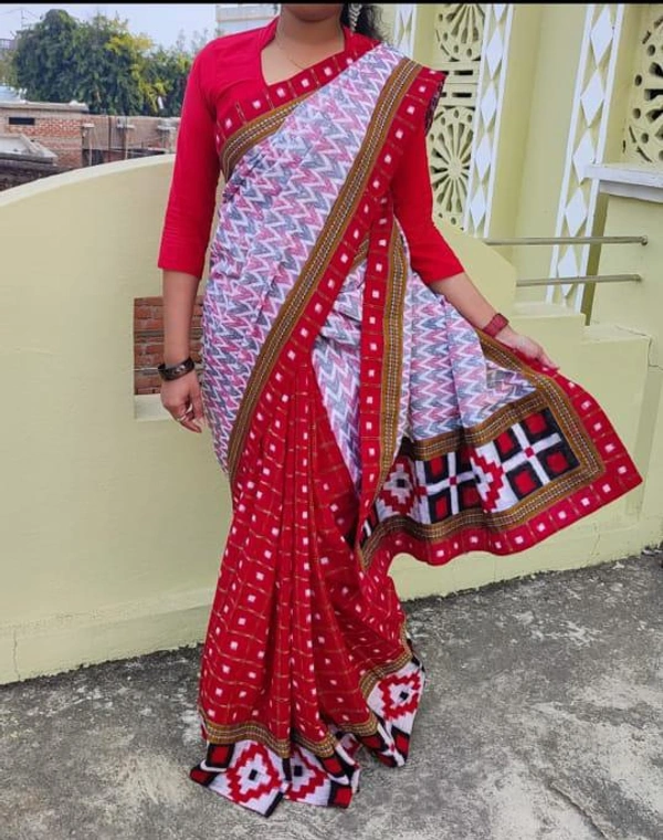 Sambalpuri patchwork saree is a weaving style that employs resist dyeing technique to impart colors to the yarns before their interlacement. The fabric woven in this technique shows a feathered and hazy pattern which is a wonderful classic in its own way.