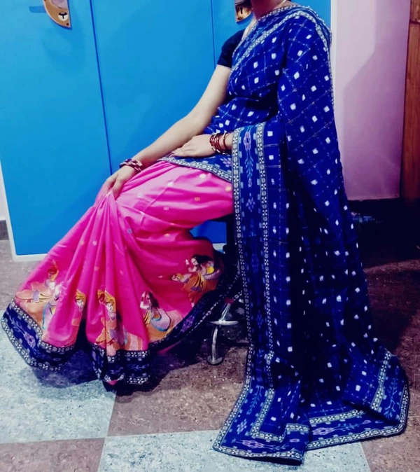 Sambalpuri patchwork saree is a weaving style that employs resist dyeing technique to impart colors to the yarns before their interlacement. The fabric woven in this technique shows a feathered and hazy pattern which is a wonderful classic in its own way.