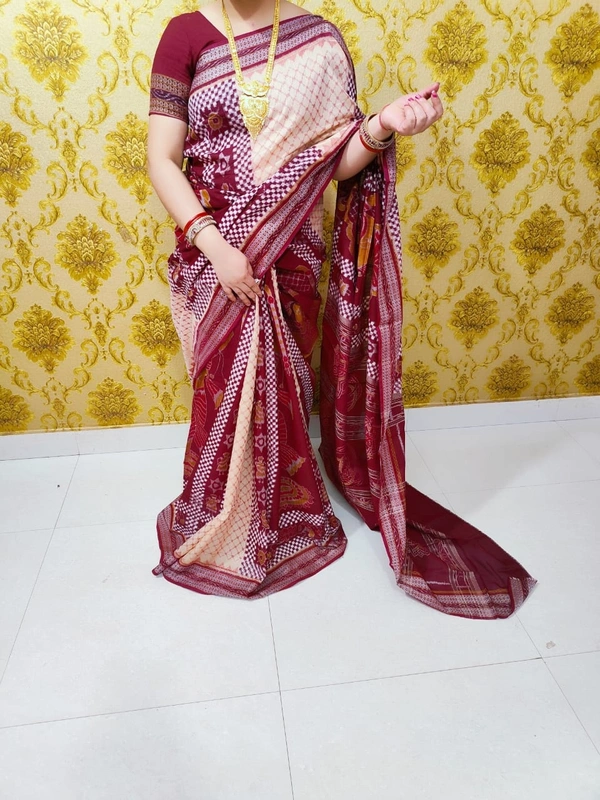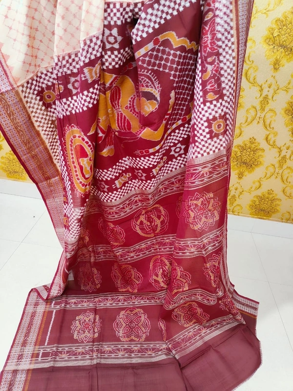 hand-woven fantasy, the Sambalpuri saree is a reflection of its stimulating traditional roots and artistic intricacy. An elegant illustration of the glories of past with contemporary chicness, the Sambalpuri saree will transform any woman into an artist’s muse.The Journey of Sambalpuri: The Saga of an Unending SareeThe story of Sambalpuri weaves is one of mythology and magic. With its roots dipped in the Indian epics and tradition, the Sambalpuri weaves have lasted the test of time owing to the extraordinary craftsmanship of the weavers. It is believed by Padmashree Haldhar Nag, an eminent poet from Odisha that Krishna draped the Sambalpuri around Draupadi, a saree so long that it had no end.Praised for the immaculate artistry, the Sambalpuri makers are dwellers of Orissa. Unique in the making and exquisite in its designs, the Sambalpuri weave reflects an ancient handicraft called BandhaKala. The yarns are tied in accordance with the desired pattern to prevent absorption of dyes in the other areas. It is then dyed with colours that are made by the artisans. The weaves are praised for their vibrant colours and intricate designs, often inspired by the traditional motifs seen occurring at the major temples of Odisha. More recently, the makers are experimenting with the themes and colours for an enhanced contemporary appeal