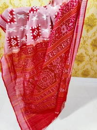 hand-woven fantasy, the Sambalpuri saree is a reflection of its stimulating traditional roots and artistic intricacy. An elegant illustration of the glories of past with contemporary chicness, the Sambalpuri saree will transform any woman into an artist’s muse.The Journey of Sambalpuri: The Saga of an Unending SareeThe story of Sambalpuri weaves is one of mythology and magic. With its roots dipped in the Indian epics and tradition, the Sambalpuri weaves have lasted the test of time owing to the extraordinary craftsmanship of the weavers. It is believed by Padmashree Haldhar Nag, an eminent poet from Odisha that Krishna draped the Sambalpuri around Draupadi, a saree so long that it had no end.Praised for the immaculate artistry, the Sambalpuri makers are dwellers of Orissa. Unique in the making and exquisite in its designs, the Sambalpuri weave reflects an ancient handicraft called BandhaKala. The yarns are tied in accordance with the desired pattern to prevent absorption of dyes in the other areas. It is then dyed with colours that are made by the artisans. The weaves are praised for their vibrant colours and intricate designs, often inspired by the traditional motifs seen occurring at the major temples of Odisha. More recently, the makers are experimenting with the themes and colours for an enhanced contemporary appeal