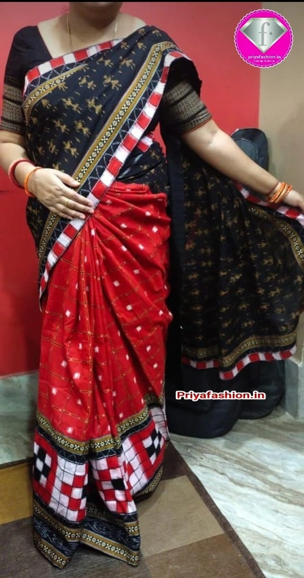 101011 Sambalpuri Cotton Patchwork Saree With Blouse
