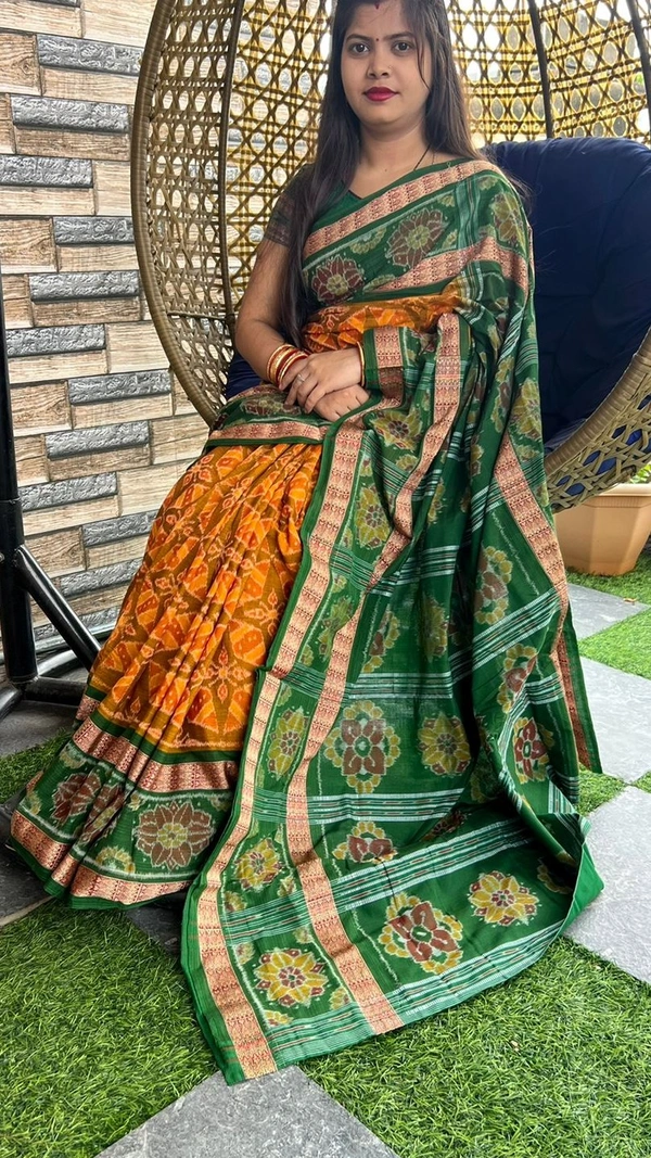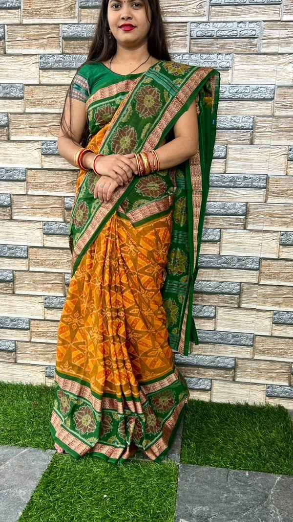 hand-woven fantasy, the Sambalpuri saree is a reflection of its stimulating traditional roots and artistic intricacy. An elegant illustration of the glories of past with contemporary chicness, the Sambalpuri saree will transform any woman into an artist’s muse.The Journey of Sambalpuri: The Saga of an Unending SareeThe story of Sambalpuri weaves is one of mythology and magic. With its roots dipped in the Indian epics and tradition, the Sambalpuri weaves have lasted the test of time owing to the extraordinary craftsmanship of the weavers. It is believed by Padmashree Haldhar Nag, an eminent poet from Odisha that Krishna draped the Sambalpuri around Draupadi, a saree so long that it had no end.Praised for the immaculate artistry, the Sambalpuri makers are dwellers of Orissa. Unique in the making and exquisite in its designs, the Sambalpuri weave reflects an ancient handicraft called BandhaKala. The yarns are tied in accordance with the desired pattern to prevent absorption of dyes in the other areas. It is then dyed with colours that are made by the artisans. The weaves are praised for their vibrant colours and intricate designs, often inspired by the traditional motifs seen occurring at the major temples of Odisha. More recently, the makers are experimenting with the themes and colours for an enhanced contemporary appeal