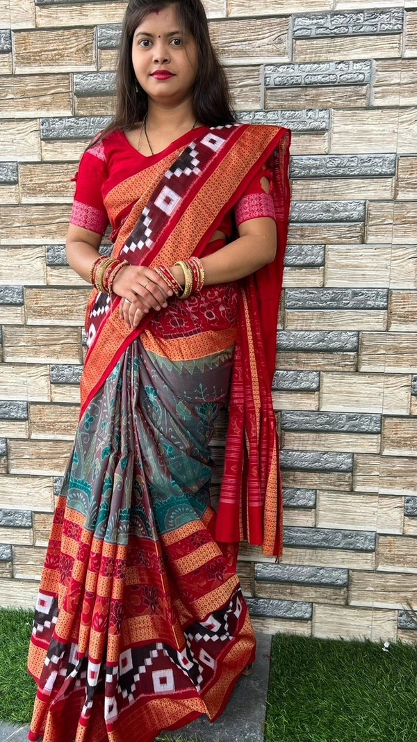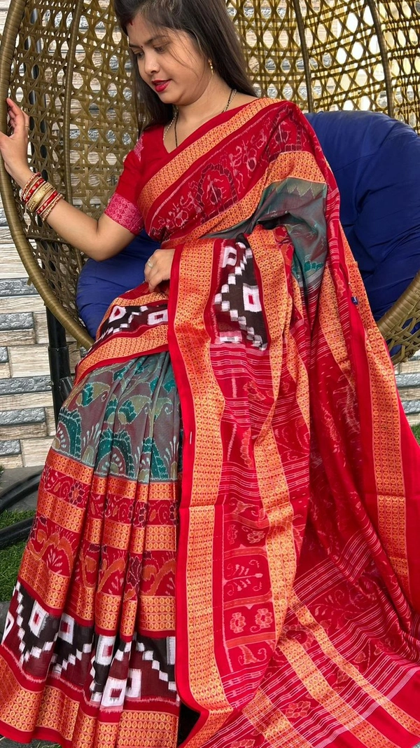 hand-woven fantasy, the Sambalpuri saree is a reflection of its stimulating traditional roots and artistic intricacy. An elegant illustration of the glories of past with contemporary chicness, the Sambalpuri saree will transform any woman into an artist’s muse.The Journey of Sambalpuri: The Saga of an Unending SareeThe story of Sambalpuri weaves is one of mythology and magic. With its roots dipped in the Indian epics and tradition, the Sambalpuri weaves have lasted the test of time owing to the extraordinary craftsmanship of the weavers. It is believed by Padmashree Haldhar Nag, an eminent poet from Odisha that Krishna draped the Sambalpuri around Draupadi, a saree so long that it had no end.Praised for the immaculate artistry, the Sambalpuri makers are dwellers of Orissa. Unique in the making and exquisite in its designs, the Sambalpuri weave reflects an ancient handicraft called BandhaKala. The yarns are tied in accordance with the desired pattern to prevent absorption of dyes in the other areas. It is then dyed with colours that are made by the artisans. The weaves are praised for their vibrant colours and intricate designs, often inspired by the traditional motifs seen occurring at the major temples of Odisha. More recently, the makers are experimenting with the themes and colours for an enhanced contemporary appeal