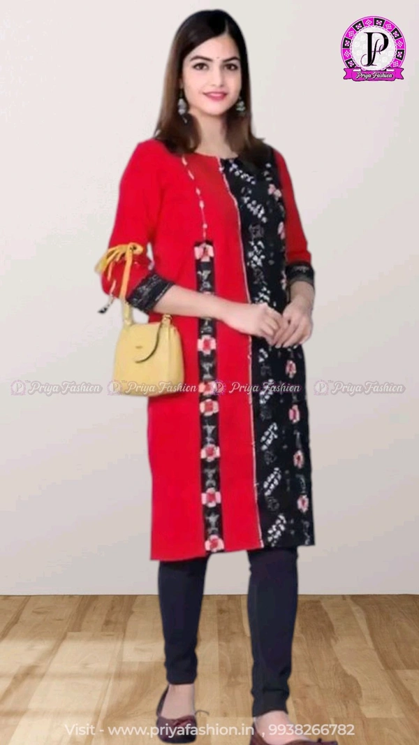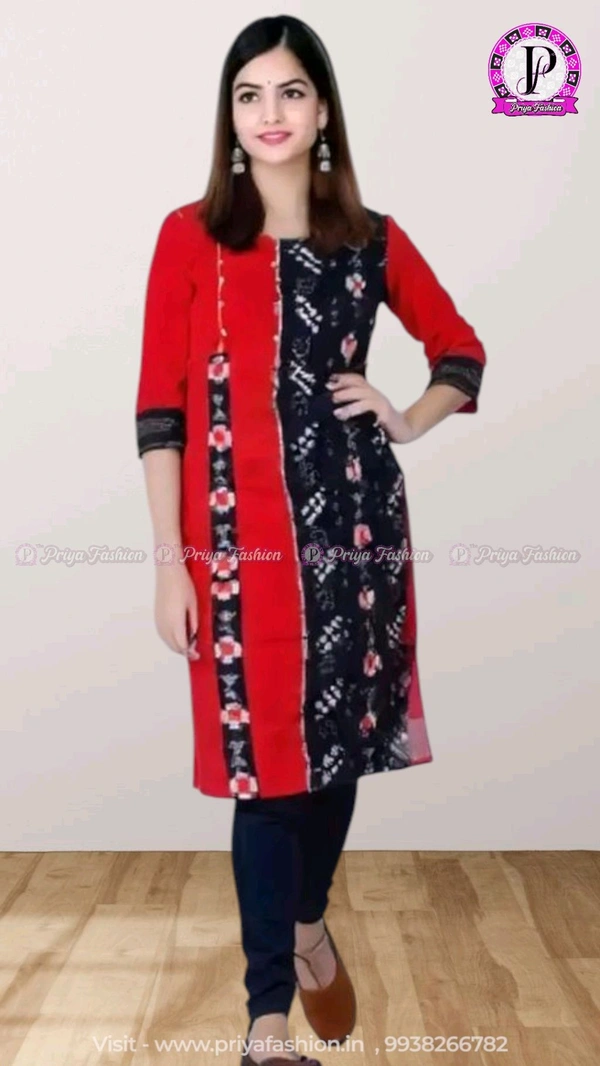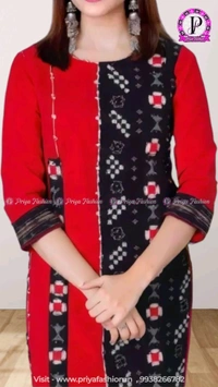 An amazing range of women kurti in soft and solid colors that looks perfect for regular wear. With beautiful designs and patterns. These apparels are very stylish and comfortable too. Get rid of the 'regular' look this season wearing Suit Set by Priya Fashion. With a perfect blend of comfort and traditional style, This Sambalpuri Cotton Kurti From Priya Fashion embellished with Buttons. Tailored from Priya Tailor. Product Kurti Length: 40 Inches.