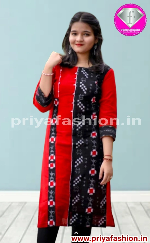 An amazing range of women kurti in soft and solid colors that looks perfect for regular wear. With beautiful designs and patterns. These apparels are very stylish and comfortable too. Get rid of the 'regular' look this season wearing Suit Set by Priya Fashion. With a perfect blend of comfort and traditional style, This Sambalpuri Cotton Kurti From Priya Fashion embellished with Buttons. Tailored from Priya Tailor. Product Kurti Length: 40 Inches.