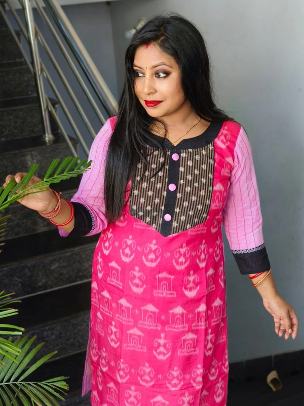 An amazing range of women kurti in soft and solid colors that looks perfect for regular wear. With beautiful designs and patterns. These apparels are very stylish and comfortable too. Get rid of the 'regular' look this season wearing Suit Set by Priya Fashion. With a perfect blend of comfort and traditional style, This Sambalpuri Cotton Kurti From Priya Fashion embellished with Buttons. Tailored from Priya Tailor. Product Kurti Length: 40 Inches.