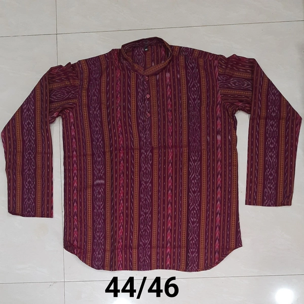 This sambalpuri kurta gives a bright look to anyone who wear it... The product has been made by local weavers and given branded stitching..Stay stylish with tradition.Perfect for your everyday use, you could pair it with a stylish pair of Jeans or Trousers complete the look.Bring in an air of affluence and charisma during work hours with this kurta...