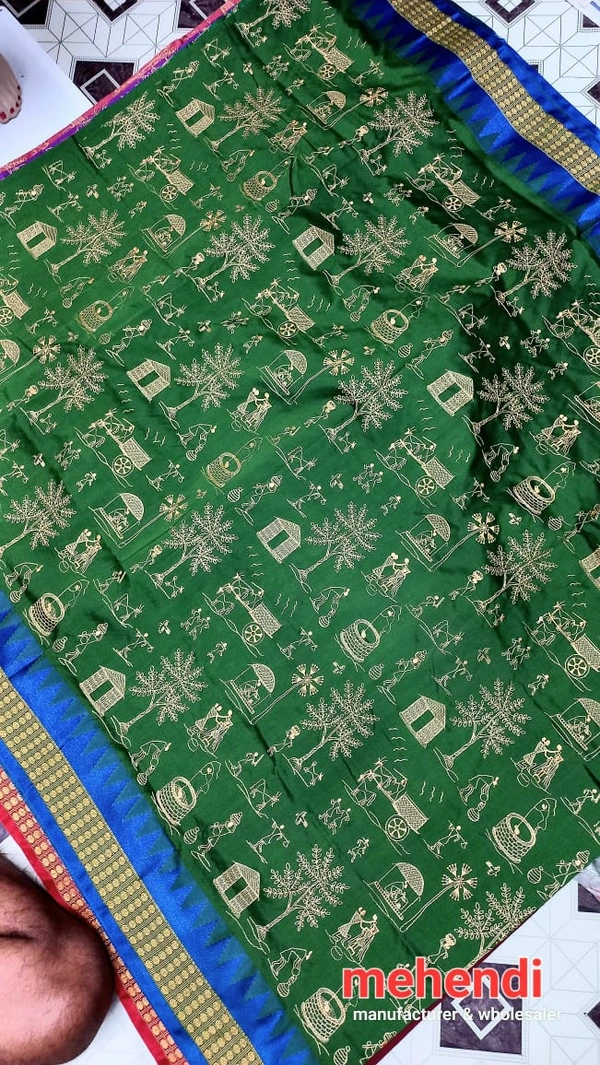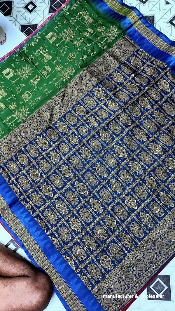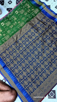 This Silk Saree traditional, With Woven With Handwoven Traditional Silk Saree with stylized floral and geometrical patterns in the borders and contrast colour border and pallu (muhajorha). in Body mix Colour & Pallu ith Blouse Piece.Its has Silk Fabric soft, heavy Zari work border and beautiful design blouse comfortable to wear. Gracefully woven by skilled artisans using high-quality threads and Zari, this saree makes a perfect addition to the wardrobe for all occasionsThis product is made from silk and finished in a attractive green color. It features sambalpuri bomkai weave, and is targeted towards women. Furthermore, it is recommended to be kept away from extreme heat, fire and corrosive liquids to avoid any form of damage....