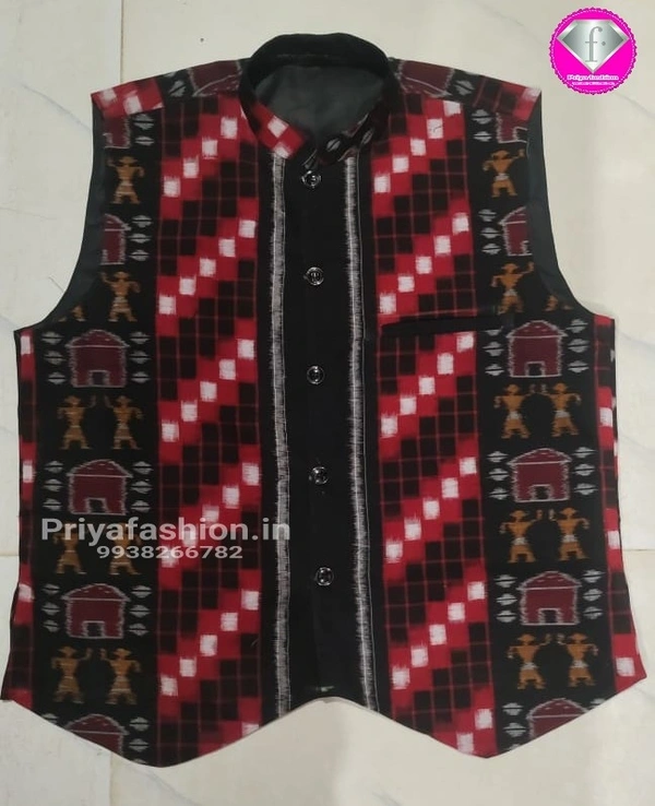 Priya Tailor Is A Modern Fashion tailor Brand Known For Exceptional Craftsmanship And Contemporary Tailoring. Sambalpuri Nehru Jacket Also Known As Jawahar Cut For Mens Gives The Perfect Look For Formal To Casual Occasions With The High Quality Blended Fabric Combined With Perfectly Crafted Stitching. These Nehru Jackets Have 3 Pockets And Have A Regular Fit.These Jackets Will Enhance Your Elegance And Is Sure To Make Heads Turn. So, Go Ahead And Add These To Your Collection And Make Every Occasion A Memorable One.Pair It With Shirt Or Kurta For A Chic Evening Party, Sambalpuri Days, marriage Party,and all fastival....