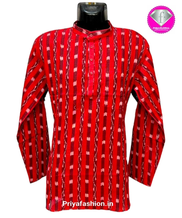 This sambalpuri kurta gives a bright look to anyone who wear it... The product has been made by local weavers and given branded stitching..Stay stylish with tradition.Perfect for your everyday use, you could pair it with a stylish pair of Jeans or Trousers complete the look.Bring in an air of affluence and charisma during work hours with this kurta...