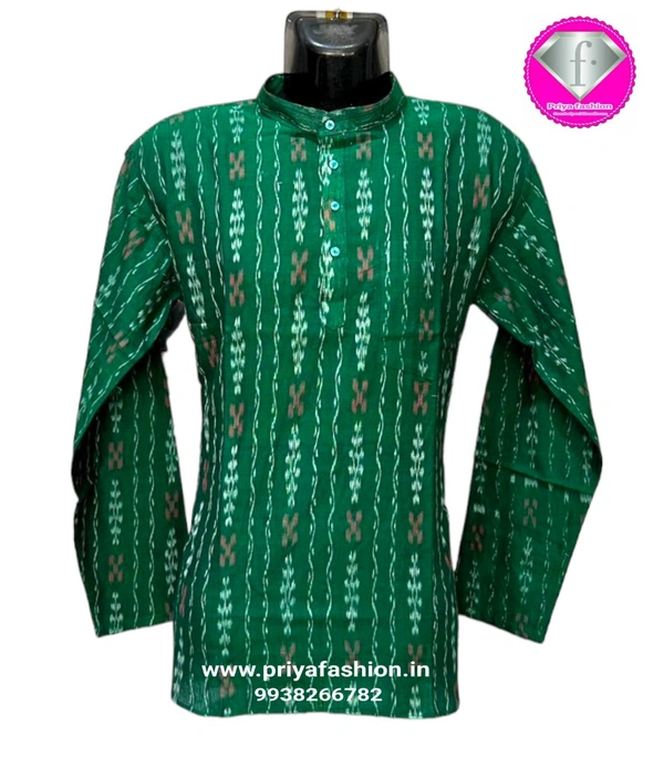 This sambalpuri kurta gives a bright look to anyone who wear it... The product has been made by local weavers and given branded stitching..Stay stylish with tradition.Perfect for your everyday use, you could pair it with a stylish pair of Jeans or Trousers complete the look.Bring in an air of affluence and charisma during work hours with this kurta...