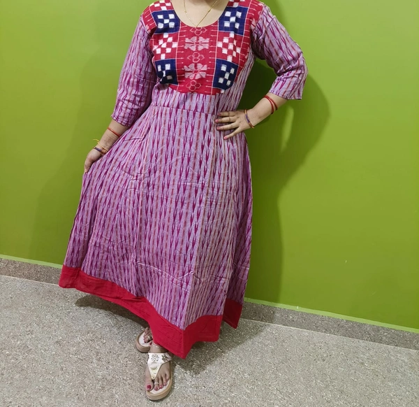 An amazing range of women kurta in soft and solid colors that looks perfect for regular wear. With beautiful designs and patterns. These apparels are very stylish and comfortable too. Get rid of the 'regular' look this season wearing Suit Set by Priya Fashion. With a perfect blend of comfort and traditional style, This Cotton long Round Anarkali Kurti From Priya Fashion embellished with Buttons. Tailored from Priya Tailor. Product Kurti Length: 48 Inches.
