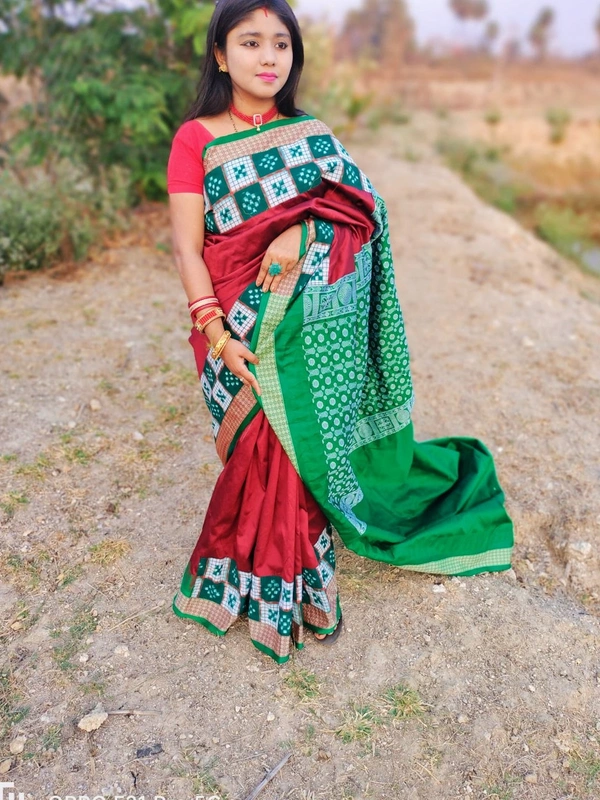 101572Silk Saree With Sambalpuri Patchwork Border With Blause