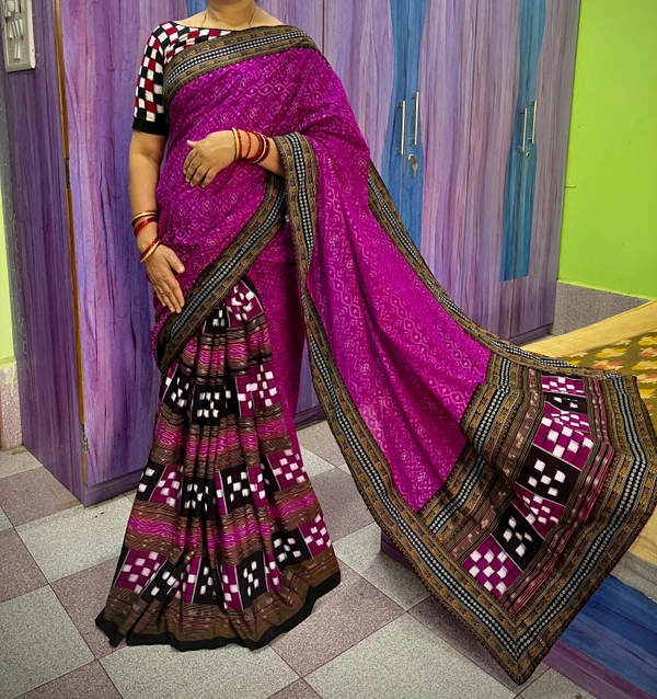 Sambalpuri Handloom Cotton patchwork saree with Blause ..