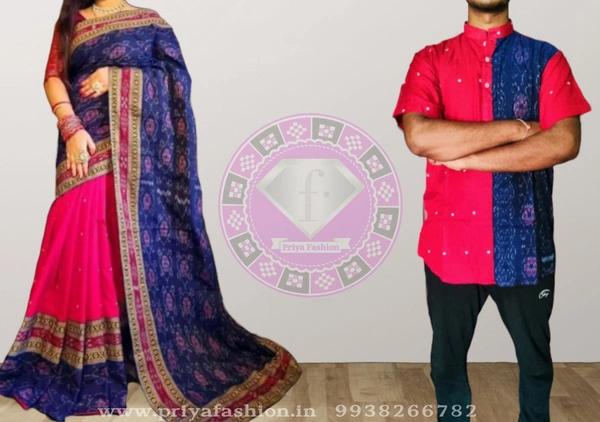 101621 Sambalpuri Cotton Patchwork Saree With Kurta , Couple Dress
