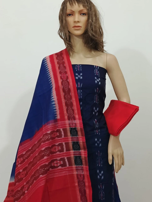 Fabric - Suit ( Top ) - Cotton, Salwar ( Bottom ) - Cotton, Dupatta - Cotton. This Sambalpuri Handloom Salwar Suit Dress Material is made up of Breathable Cotton Ikat to give you immense comfort throughout the day.