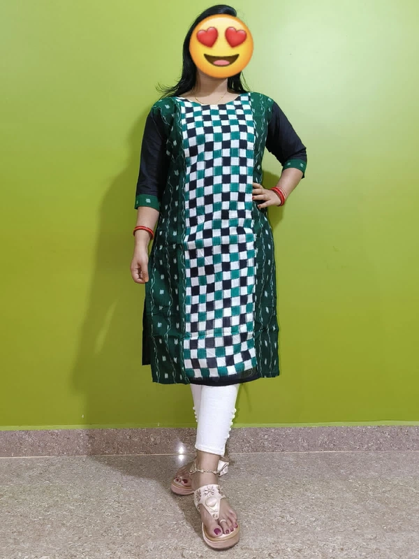 Sambalpuri kurti is a traditional handwoven garment originating from the Sambalpur region in Odisha, India. These kurtis are known for their vibrant colors and unique ikat patterns created through a tie-dye resist technique. They showcase the rich cultural heritage of the region and are popular for both casual and festive wear.