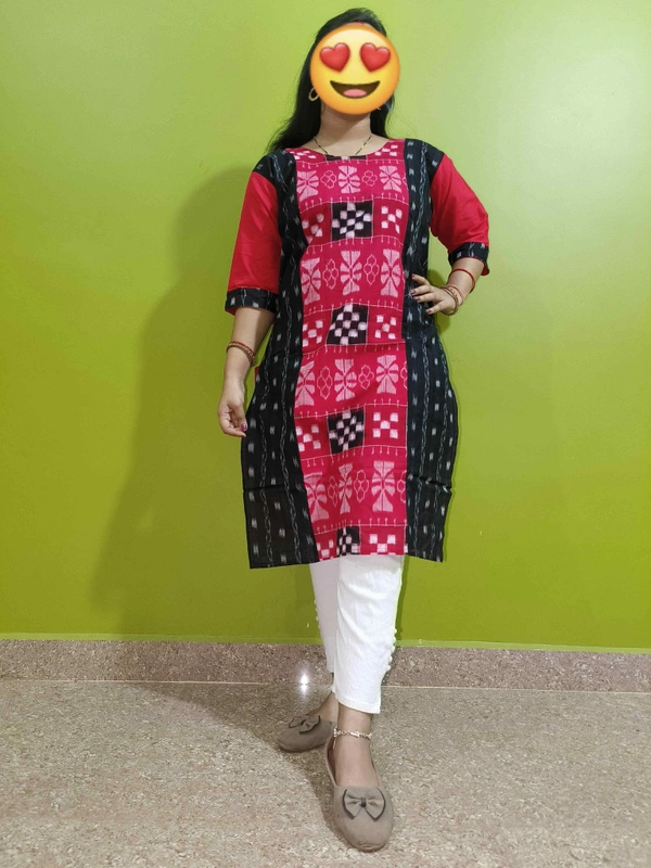 Sambalpuri kurti is a traditional handwoven garment originating from the Sambalpur region in Odisha, India. These kurtis are known for their vibrant colors and unique ikat patterns created through a tie-dye resist technique. They showcase the rich cultural heritage of the region and are popular for both casual and festive wear.