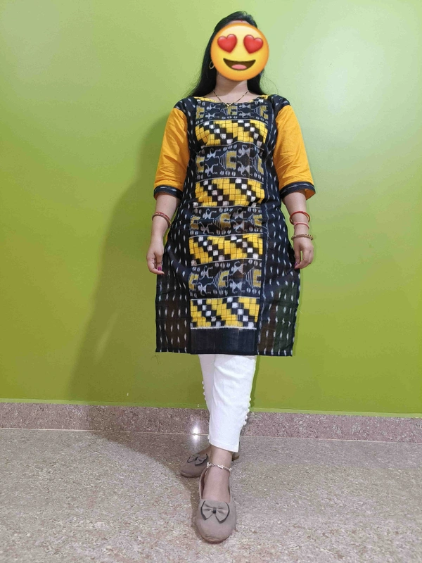 Sambalpuri kurti is a traditional handwoven garment originating from the Sambalpur region in Odisha, India. These kurtis are known for their vibrant colors and unique ikat patterns created through a tie-dye resist technique. They showcase the rich cultural heritage of the region and are popular for both casual and festive wear.
