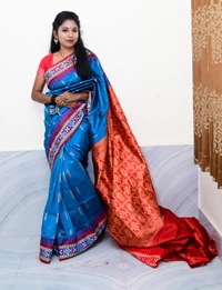 This Silk Saree traditional, With Woven With Handwoven Traditional Silk Saree with stylized floral and geometrical patterns in the borders and contrast colour border and pallu (muhajorha). in Body mix Colour & Pallu ith Blouse Piece.Its has Silk Fabric soft, heavy Zari work border and beautiful design blouse comfortable to wear. Gracefully woven by skilled artisans using high-quality threads and Zari, this saree makes a perfect addition to the wardrobe for all occasionsThis product is made from silk and finished in a attractive green color. It features sambalpuri bomkai weave, and is targeted towards women. Furthermore, it is recommended to be kept away from extreme heat, fire and corrosive liquids to avoid any form of damage....