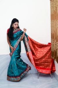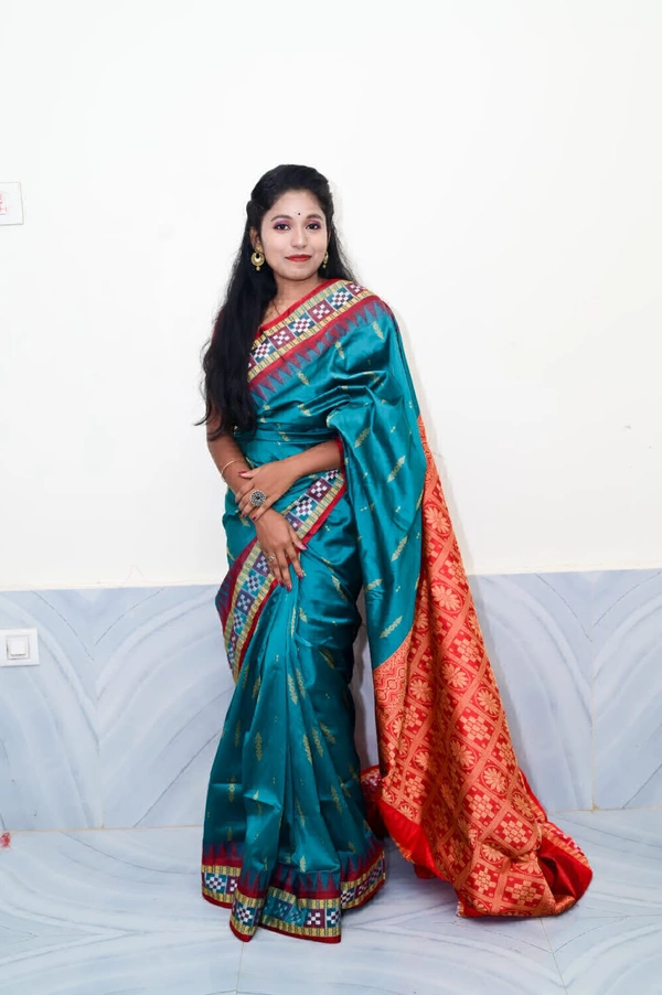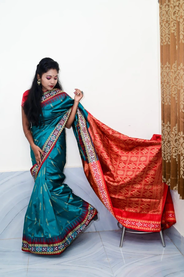 This Silk Saree traditional, With Woven With Handwoven Traditional Silk Saree with stylized floral and geometrical patterns in the borders and contrast colour border and pallu (muhajorha). in Body mix Colour & Pallu ith Blouse Piece.Its has Silk Fabric soft, heavy Zari work border and beautiful design blouse comfortable to wear. Gracefully woven by skilled artisans using high-quality threads and Zari, this saree makes a perfect addition to the wardrobe for all occasionsThis product is made from silk and finished in a attractive green color. It features sambalpuri bomkai weave, and is targeted towards women. Furthermore, it is recommended to be kept away from extreme heat, fire and corrosive liquids to avoid any form of damage....