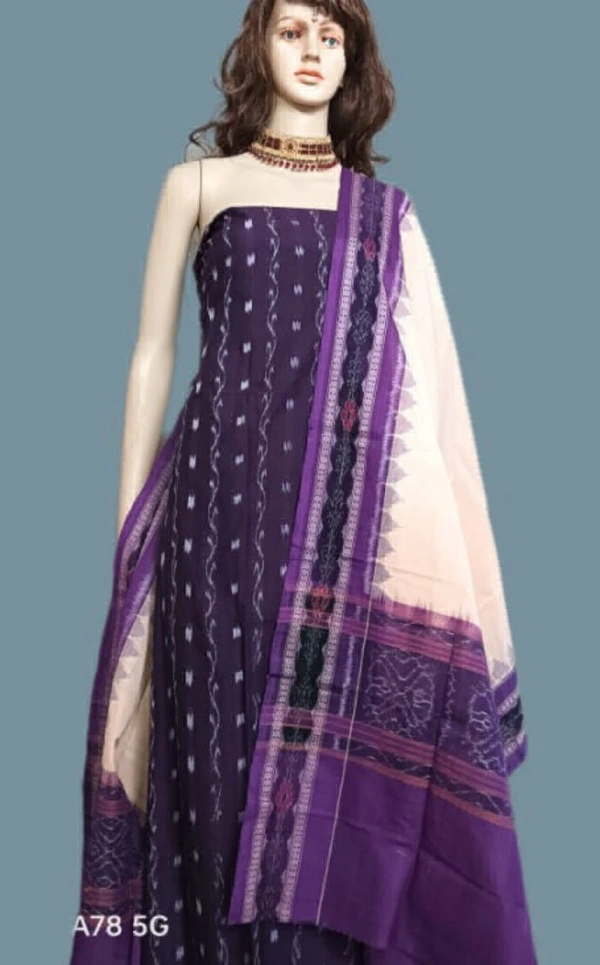 Fabric - Suit ( Top ) - Cotton, Salwar ( Bottom ) - Cotton, Dupatta - Cotton. This Sambalpuri Handloom Salwar Suit Dress Material is made up of Breathable Cotton Ikat to give you immense comfort throughout the day.