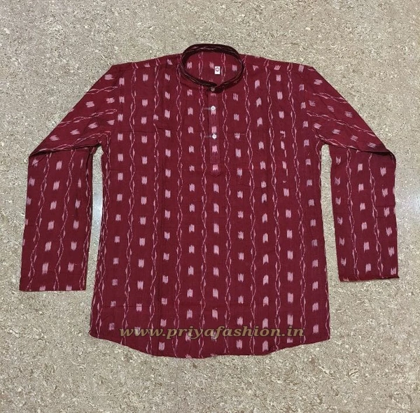 This sambalpuri kurta gives a bright look to anyone who wear it... The product has been made by local weavers and given branded stitching..Stay stylish with tradition.Perfect for your everyday use, you could pair it with a stylish pair of Jeans or Trousers complete the look.Bring in an air of affluence and charisma during work hours with this kurta...