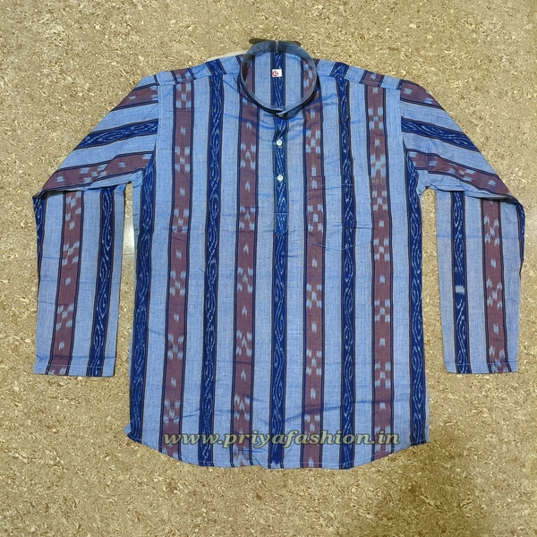 This sambalpuri kurta gives a bright look to anyone who wear it... The product has been made by local weavers and given branded stitching..Stay stylish with tradition.Perfect for your everyday use, you could pair it with a stylish pair of Jeans or Trousers complete the look.Bring in an air of affluence and charisma during work hours with this kurta...