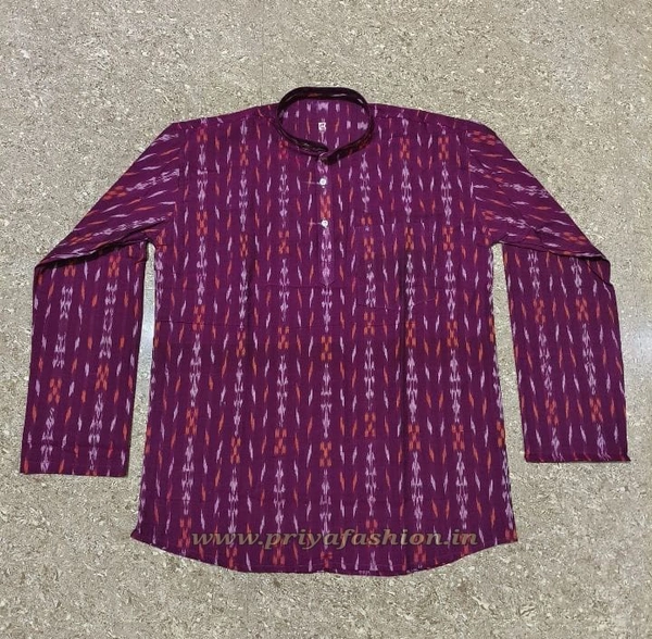 This sambalpuri kurta gives a bright look to anyone who wear it... The product has been made by local weavers and given branded stitching..Stay stylish with tradition.Perfect for your everyday use, you could pair it with a stylish pair of Jeans or Trousers complete the look.Bring in an air of affluence and charisma during work hours with this kurta...