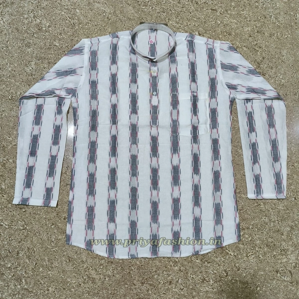 This sambalpuri kurta gives a bright look to anyone who wear it... The product has been made by local weavers and given branded stitching..Stay stylish with tradition.Perfect for your everyday use, you could pair it with a stylish pair of Jeans or Trousers complete the look.Bring in an air of affluence and charisma during work hours with this kurta...