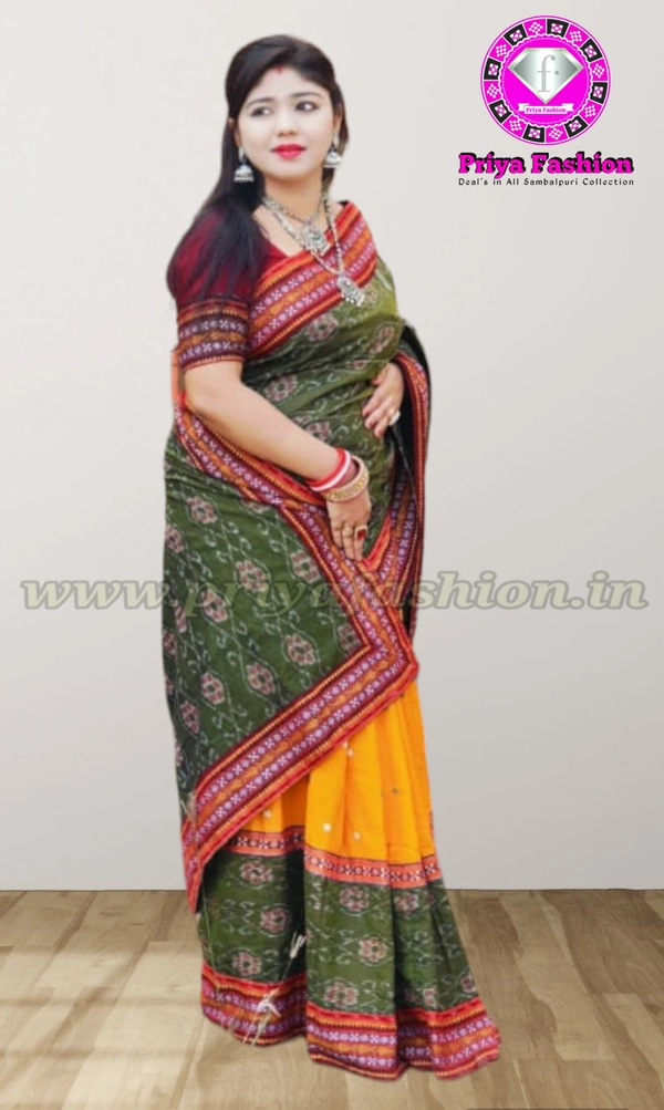 This sambalpuri patchwork Saree gives a bright look to anyone who wear it... The product has been made by Priya Fashion and given branded stitching & won New Design...Stay stylish with tradition.Perfect for your everyday use, hand-woven fantasy, the Sambalpuri patchwork saree is a reflection of its stimulating traditional roots and artistic intricacy. An elegant illustration of the glories of past with contemporary chicness, the Sambalpuri patchwork saree will transform any woman into an artist’s muse.The Journey of Sambalpuri: The Saga of an Unending Saree The story of Sambalpuri weaves is one of mythology and magic. With its roots dipped in the Indian epics and tradition, the Sambalpuri weaves have lasted the test of time owing to the extraordinary craftsmanship of the weavers. It is believed by Padmashree Haldhar Nag, an eminent poet from Odisha that Krishna draped the Sambalpuri around Draupadi, a saree so long that it had no end. Praised for the immaculate artistry, the Sambalpuri makers are dwellers of Orissa. Unique in the making and exquisite in its designs, the Sambalpuri weave reflects an ancient handicraft called BandhaKala. The yarns are tied in accordance with the desired pattern to prevent absorption of dyes in the other areas. It is then dyed with colours that are made by the artisans. The weaves are praised for their vibrant colours and intricate designs, often inspired by the traditional motifs seen occurring at the major temples of Odisha. More recently, the makers are experimenting with the themes and colours for an enhanced contemporary appeal...