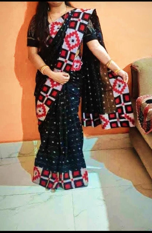 This comfortable Sambalpuri Saree can be worn by women on many different occasions,such as night outs, parties or while travelling, Anniversary💞, marriage party💑, 🫅Birthday party🎂Durga Puja🪔, Nuakhai 🌾🧑🤝🧑,and 💃🕺🎄🎋any 🪔festival function🎎.. & any fastival with special day, pair them with the right bottom wear for a minimal casual look.