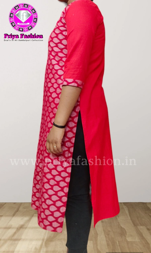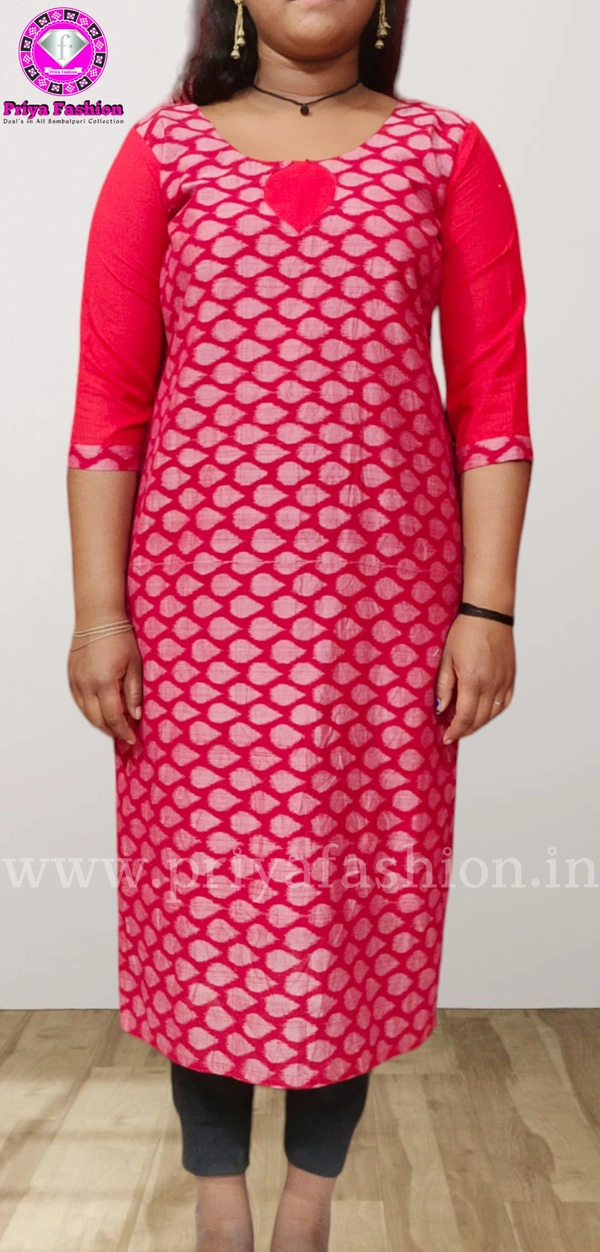 An amazing range of women kurti in soft and solid colors that looks perfect for regular wear. With beautiful designs and patterns. These apparels are very stylish and comfortable too. Get rid of the 'regular' look this season wearing Suit Set by Priya Fashion. With a perfect blend of comfort and traditional style, This Sambalpuri Cotton Kurti From Priya Fashion embellished with Buttons. Stiching from Priya Fashion Boutique...
