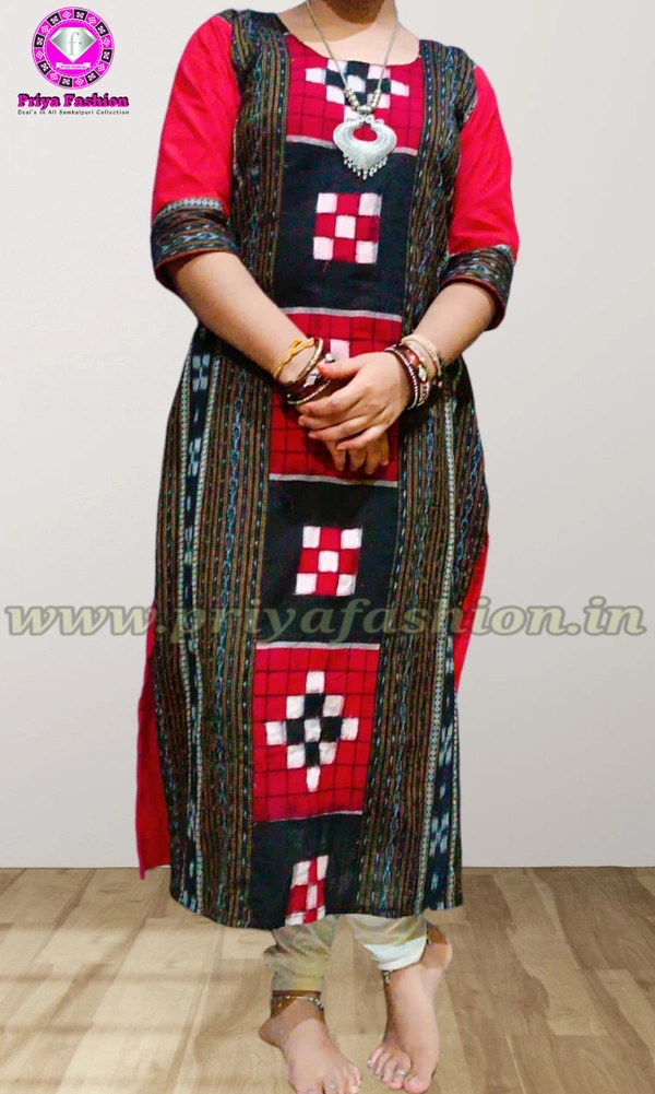 An amazing range of women kurti in soft and solid colors that looks perfect for regular wear. With beautiful designs and patterns. These apparels are very stylish and comfortable too. Get rid of the 'regular' look this season wearing Suit Set by Priya Fashion. With a perfect blend of comfort and traditional style, This Sambalpuri Cotton Kurti From Priya Fashion embellished with Buttons. Stiching from Priya Fashion Boutique...