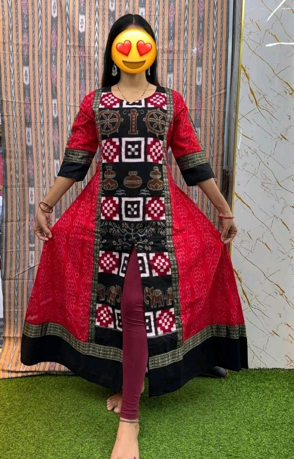 This sambalpuri Round kurti gives a bright look to anyone who wear it... The product has been made by Priya Fashion and given branded stitching & won New Design...Stay stylish with tradition. Sambalpuri kurti is a traditional handwoven garment originating from the Sambalpur region in Odisha, India. These kurtis are known for their vibrant colors and unique ikat patterns created through a tie-dye resist technique. They showcase the rich cultural heritage of the region and are popular for both casual and festive wear...