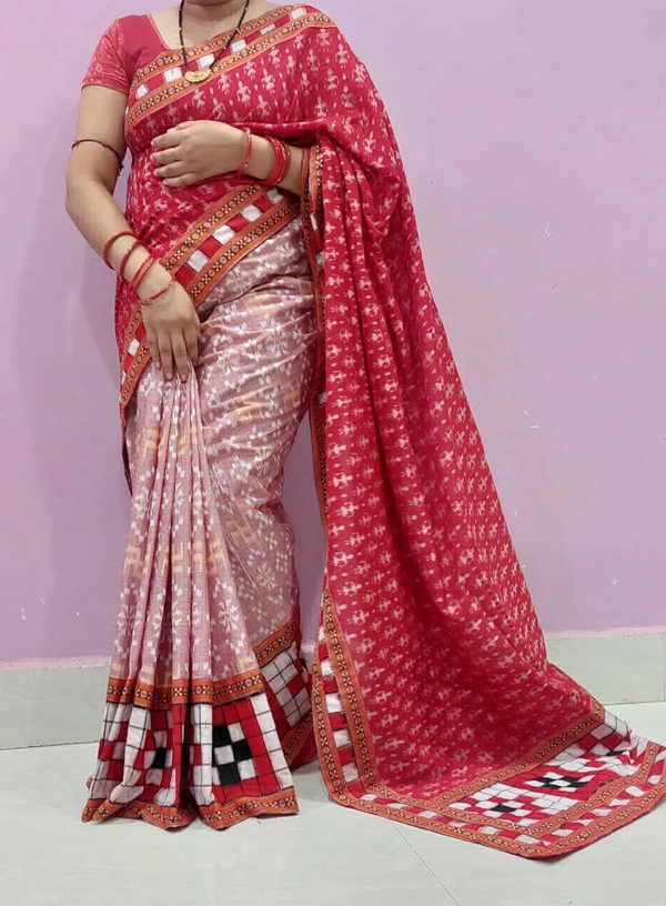 102184 Sambalpuri Handloom Cotton Patchwork Saree With Blouse