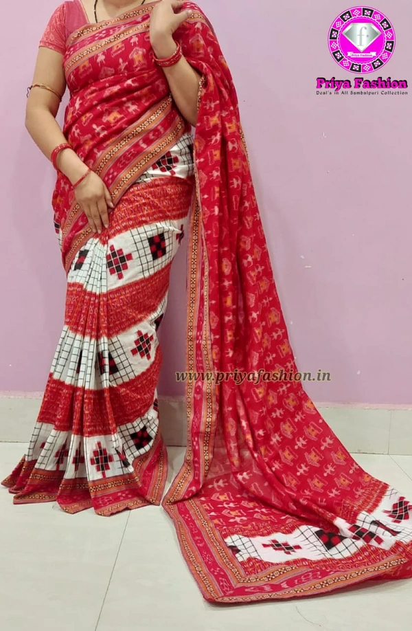102185 Sambalpuri Handloom Cotton Patchwork Saree With Blouse