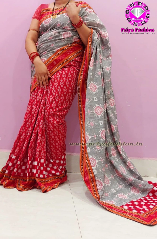 102188 Sambalpuri Handloom Cotton Patchwork Saree With Blouse