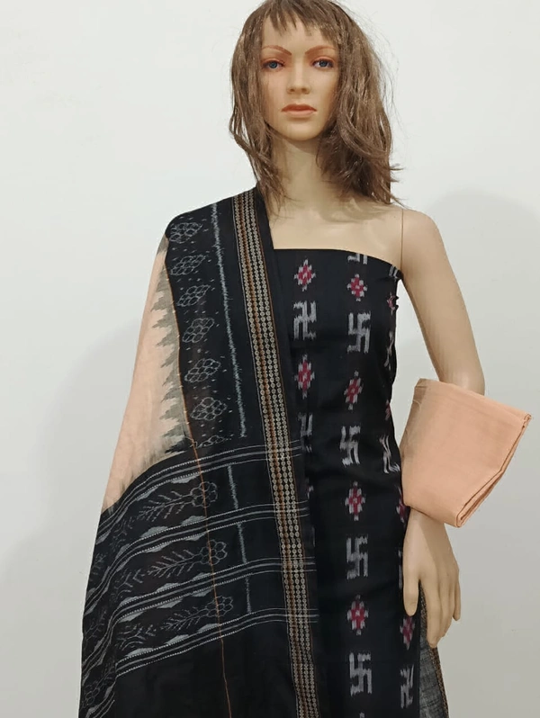 Fabric - Suit ( Top ) - Cotton, Salwar ( Bottom ) - Cotton, Dupatta - Cotton. This Sambalpuri Handloom Salwar Suit Dress Material is made up of Breathable Cotton Ikat to give you immense comfort throughout the day.